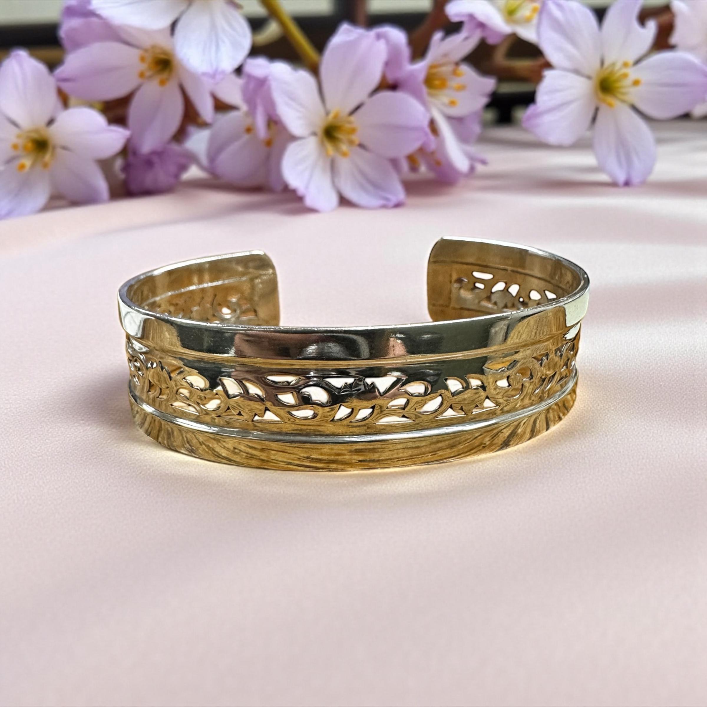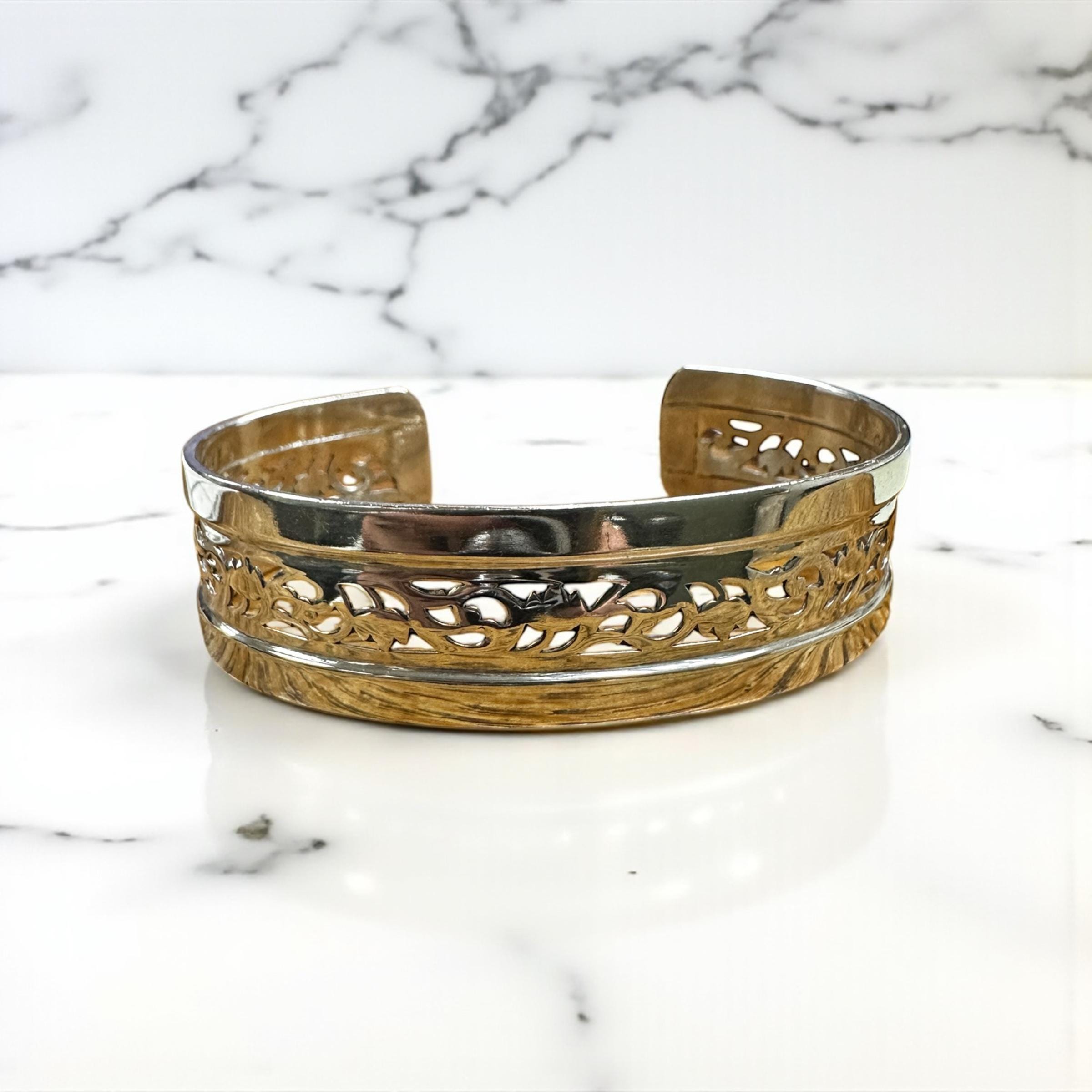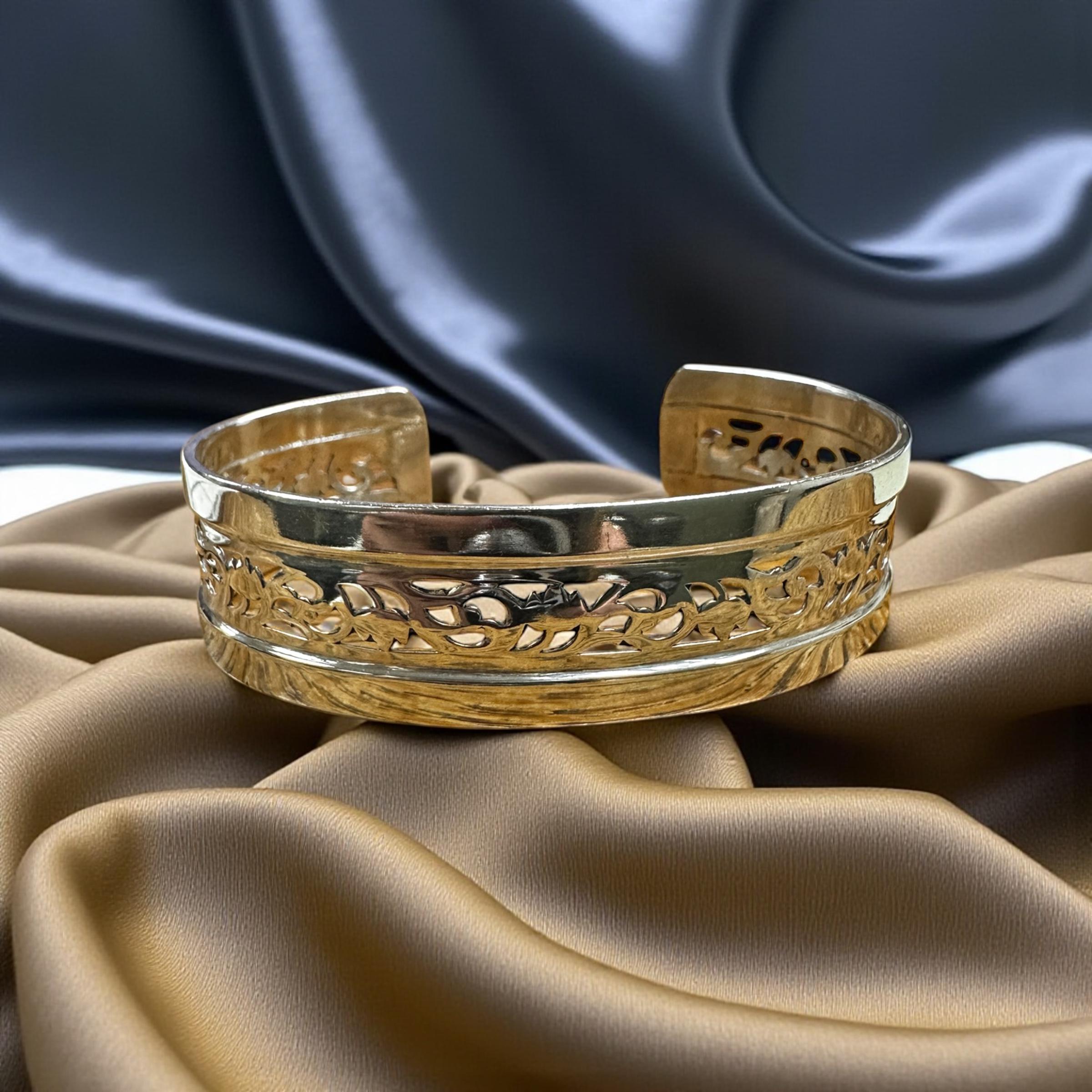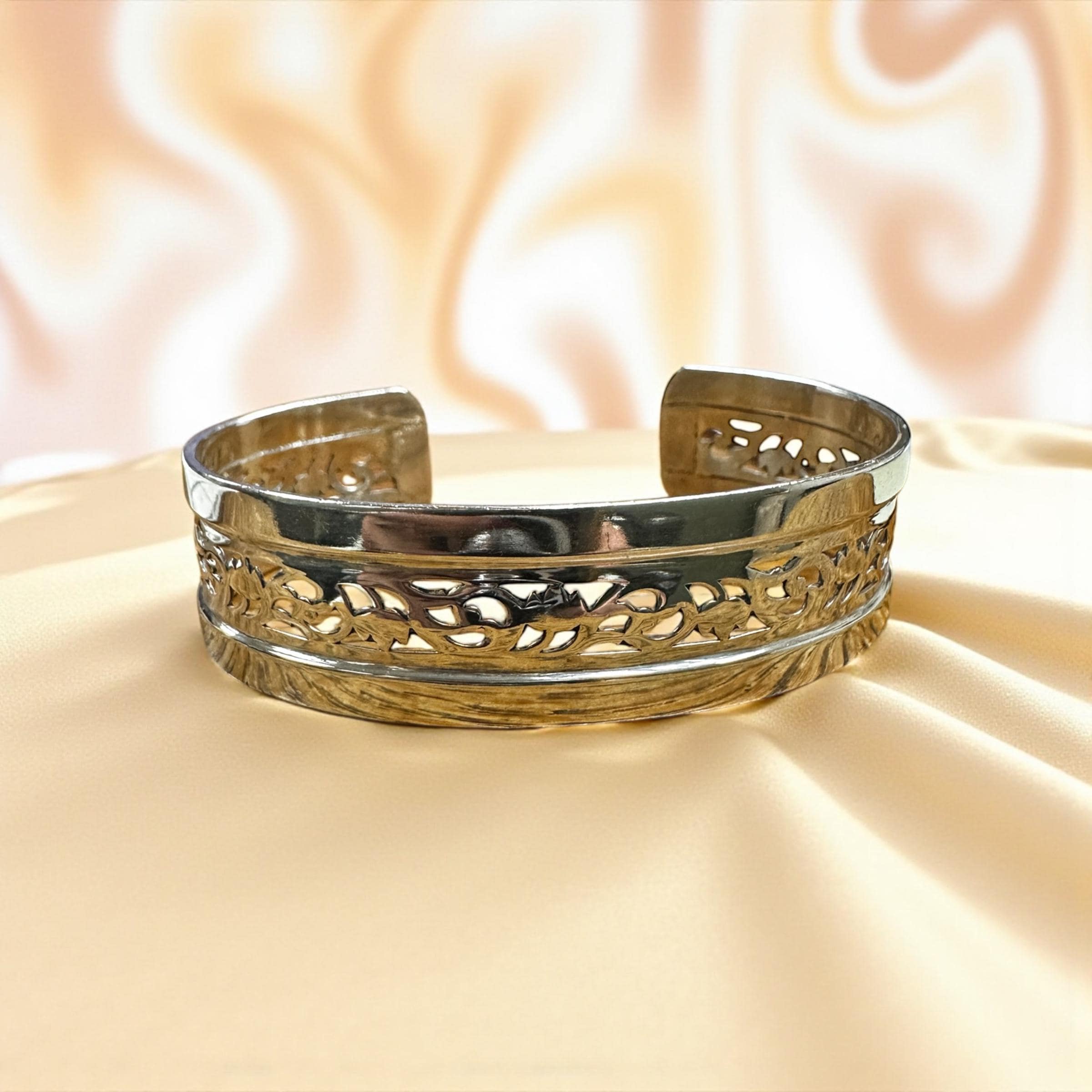Stunning sterling silver cuff bracelet with pierced design. The pieced design is intriguing and the bracelet is comfortable to wear. You are sure to get compliments on this fun cuff bracelet!