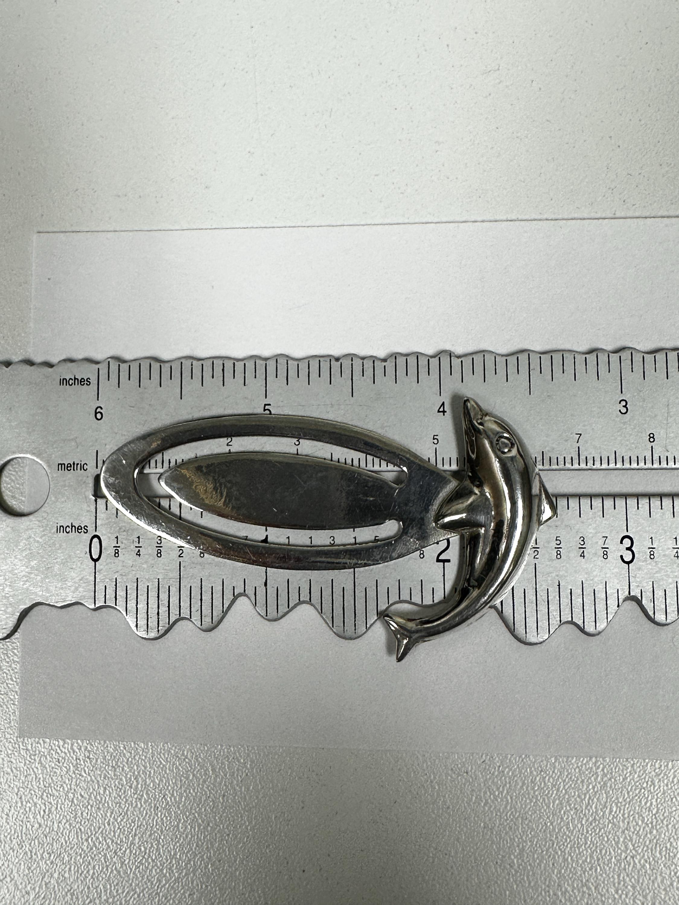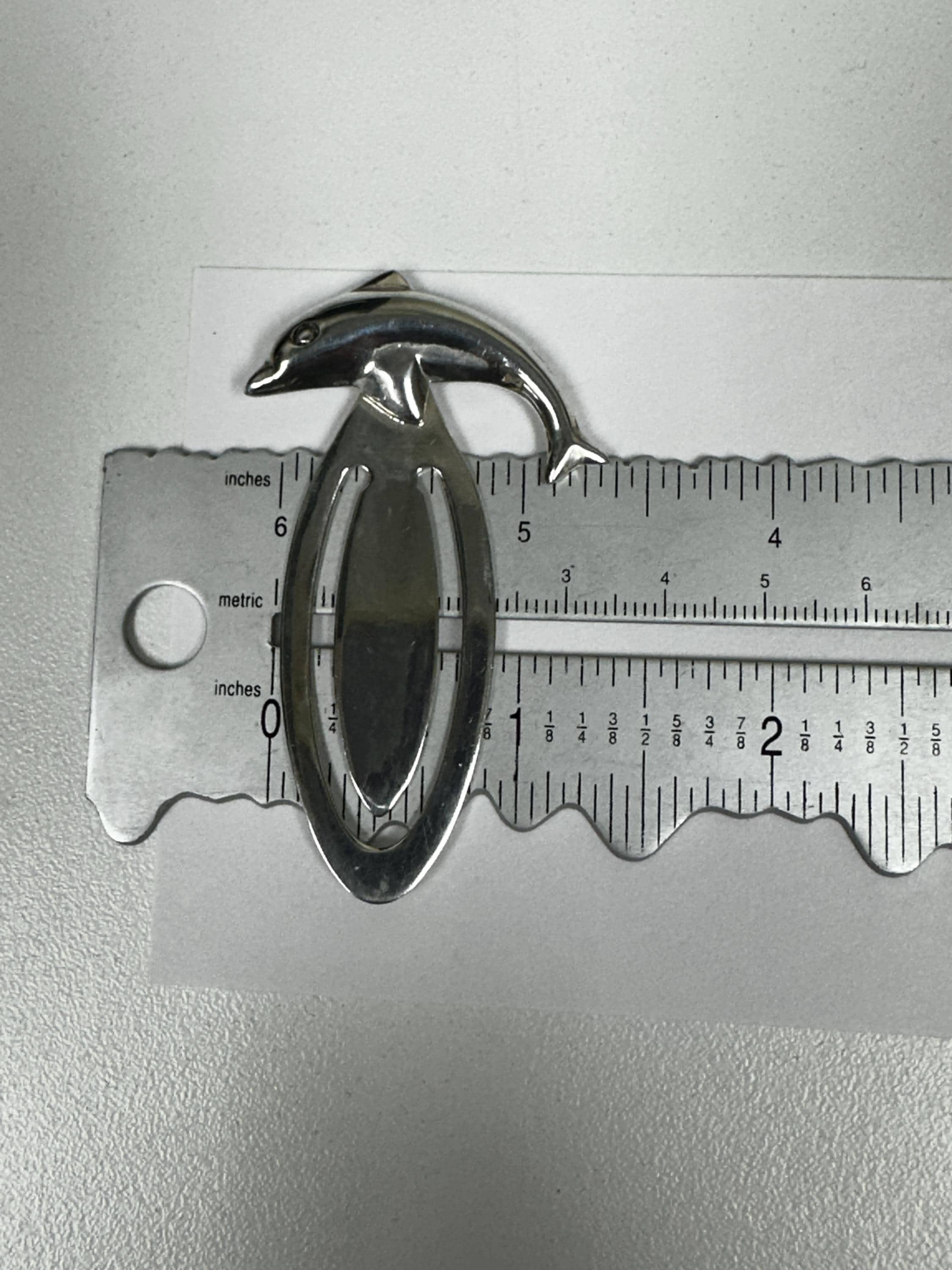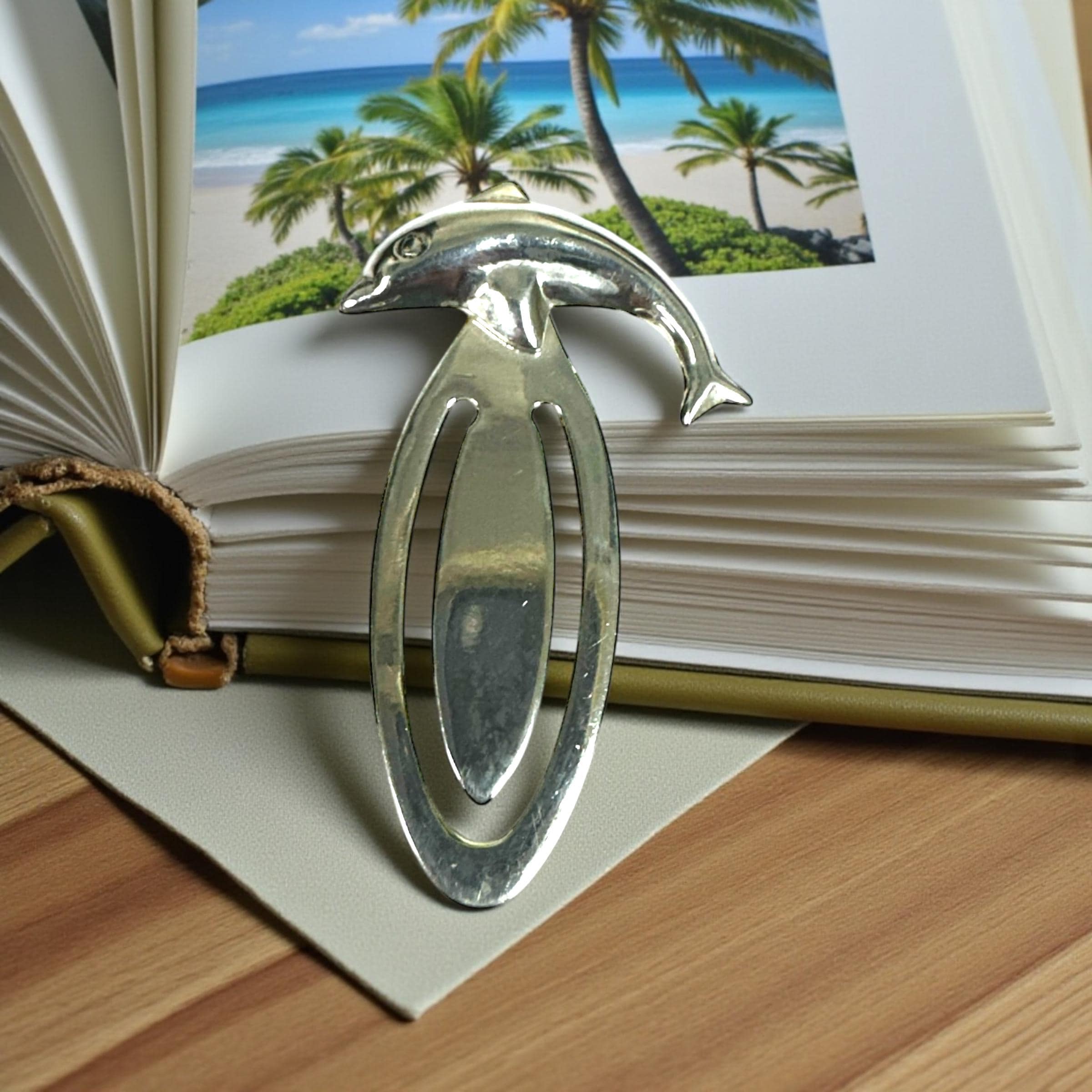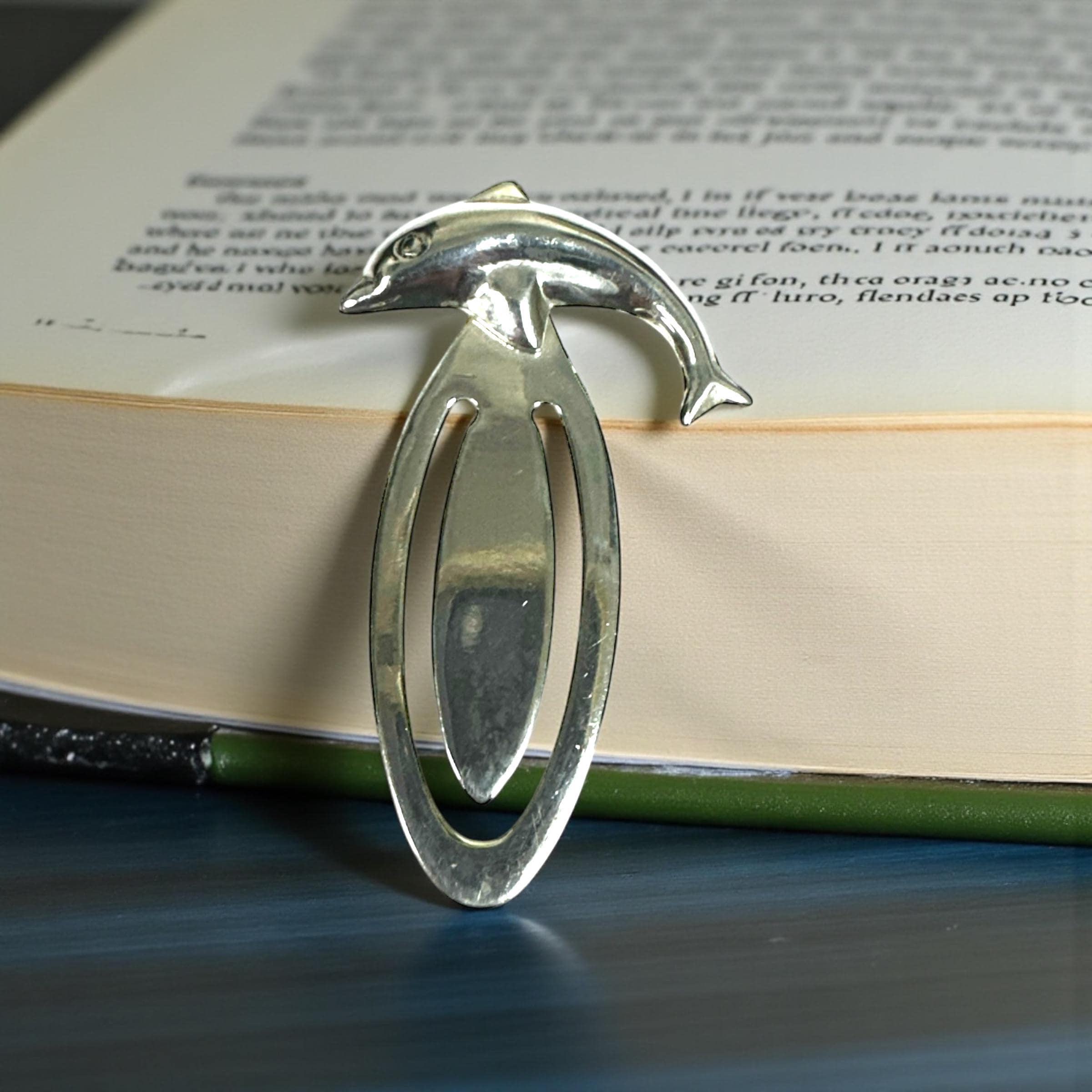 Add a splash of fun to your reading with this graceful sterling silver dolphin bookmark. The dolphin appears to be leaping from the water, its curved body capturing his/her playfulness. Whether marking your place in a book or given as gift, this bookmark brings a touch of seaside serenity to every page!!