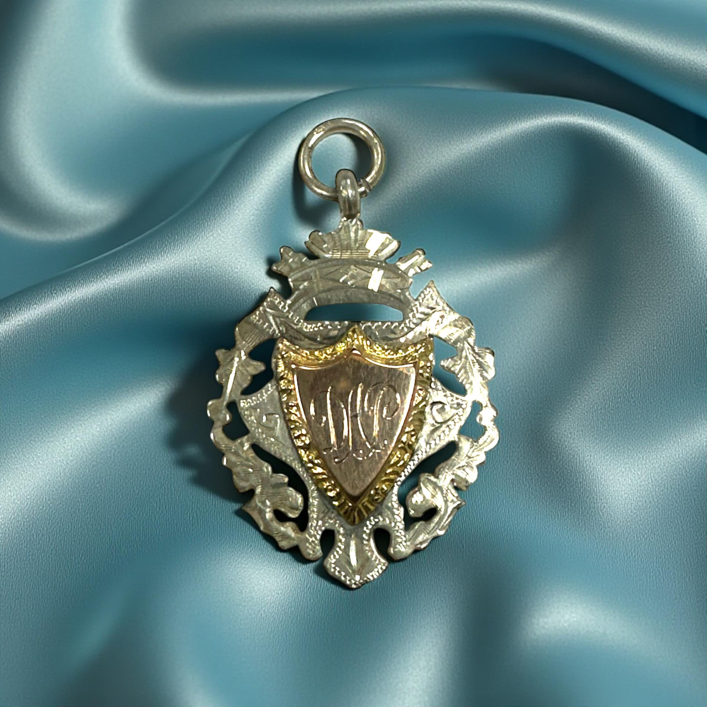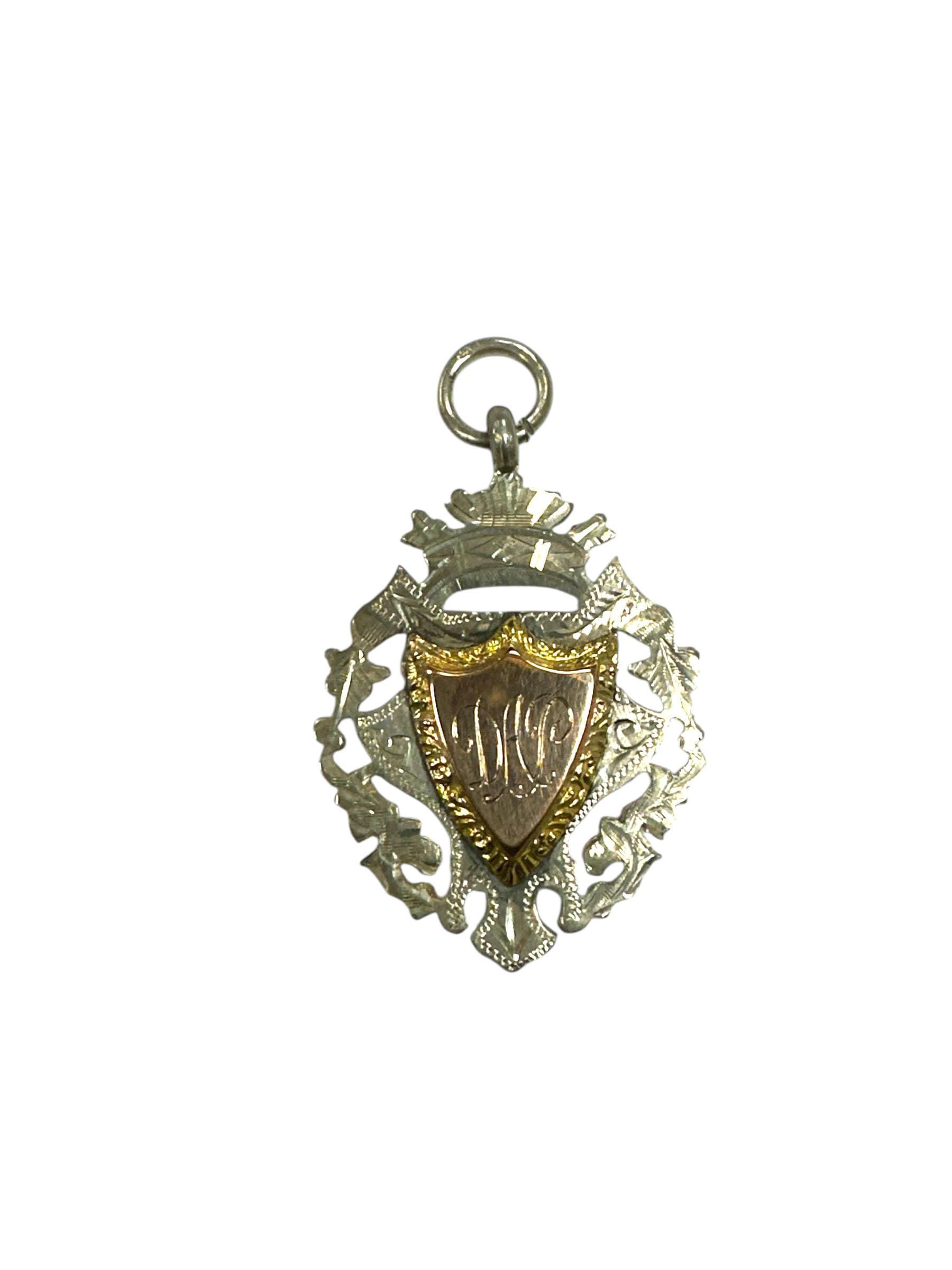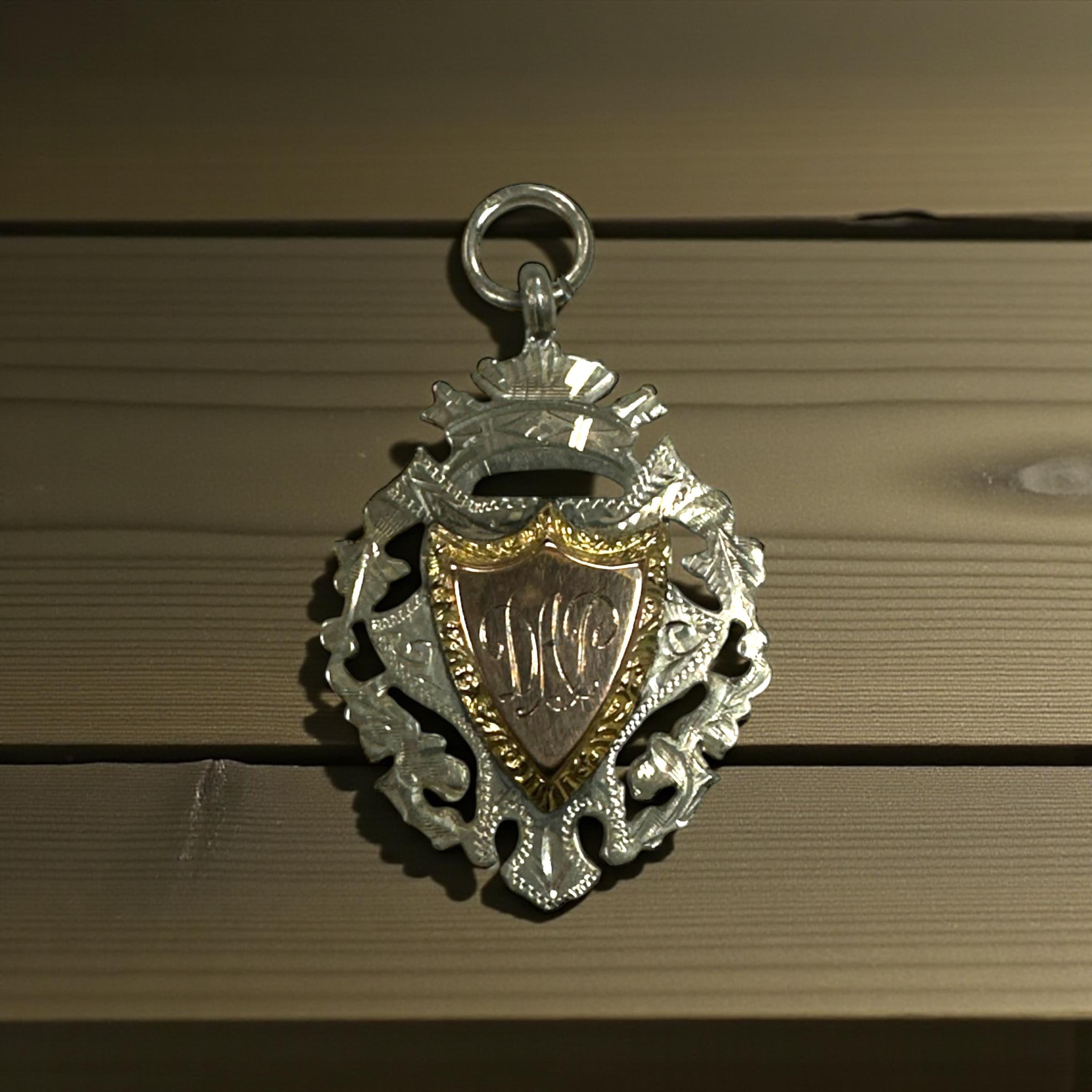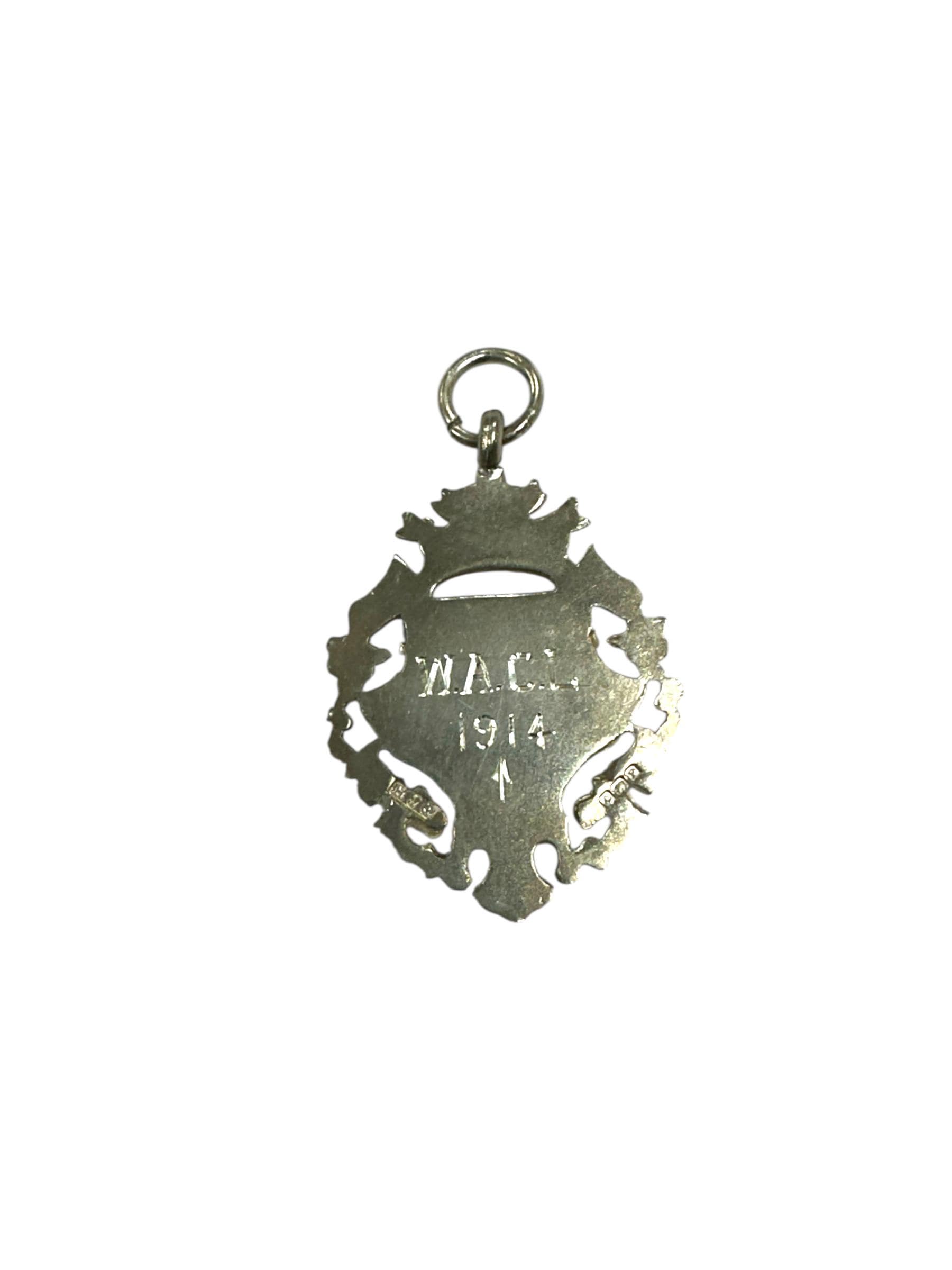 Metal: Hallmarked Sterling Silver, Gold washed engraved crest. Engraved on the back of the medal is the following: "W.A.C.L. 1914" and an up arrow