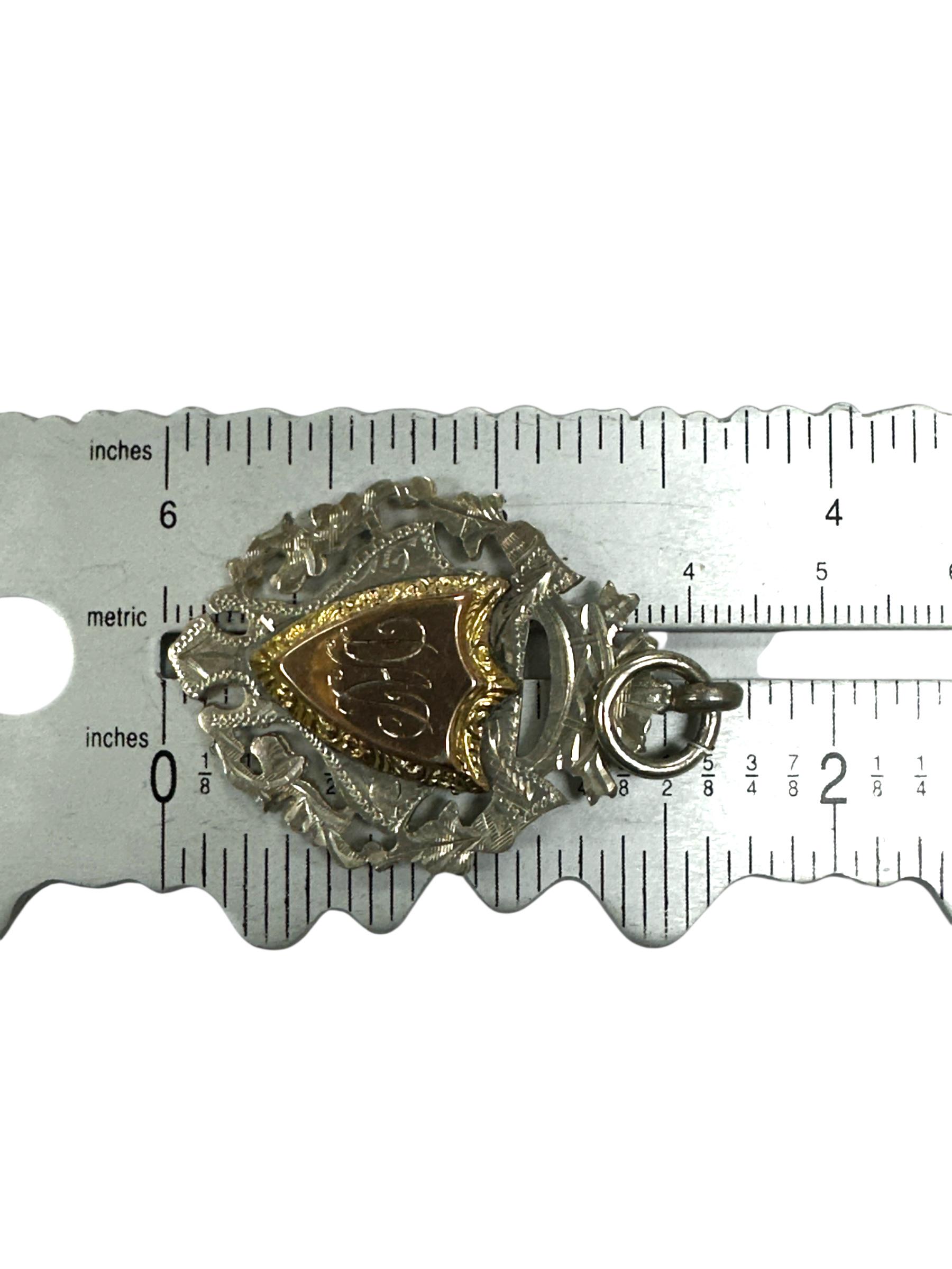 Hallmarked vintage sterling silver medal. The medal is hallmarked "HJC" and Anchor, Lion ad the letter P. In the center of the medal is a gold wash crest engraved with the letters "DAP" .