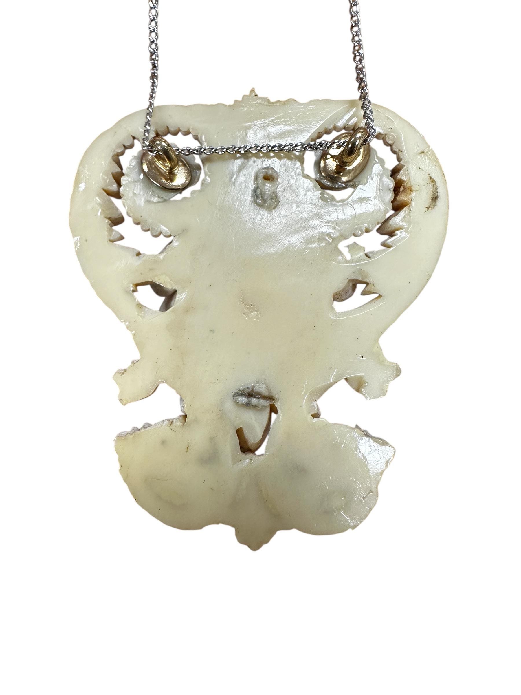 Gemstone: The pendant is carved from Celluloid (not a gemstone). It appears that at one time it was painted white...some of the white has come off. Please look at photos carefully.