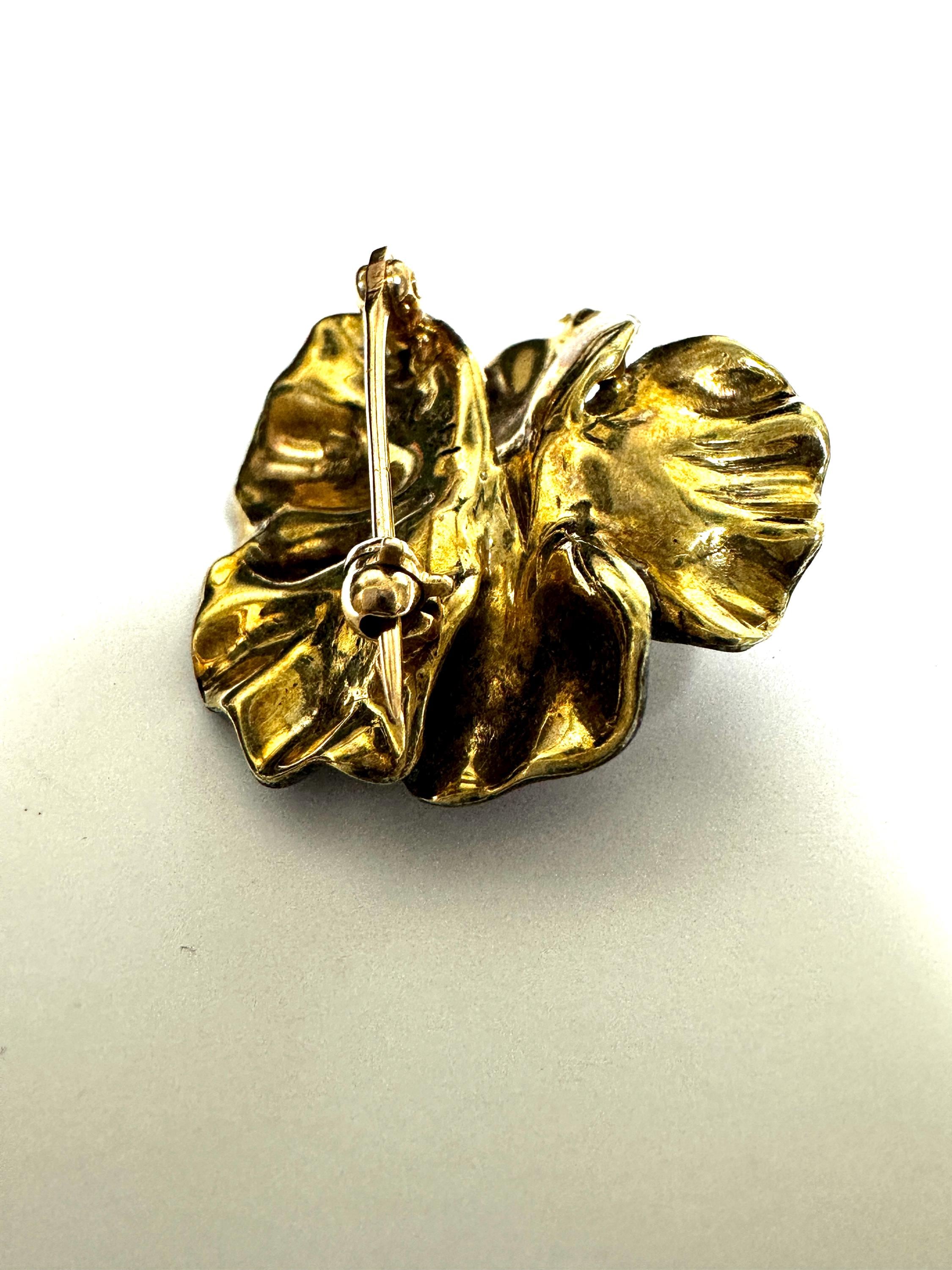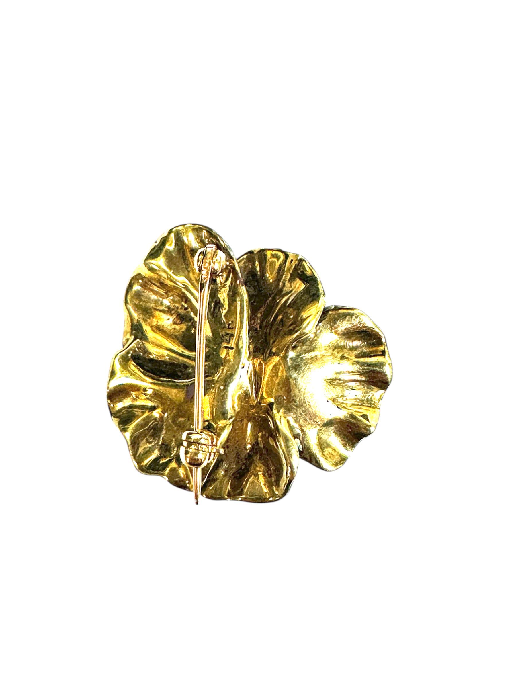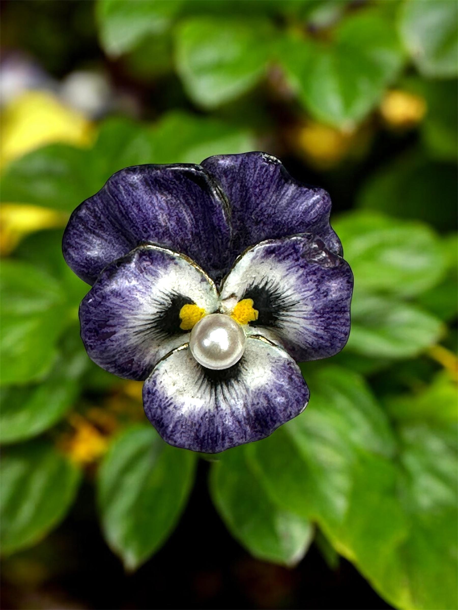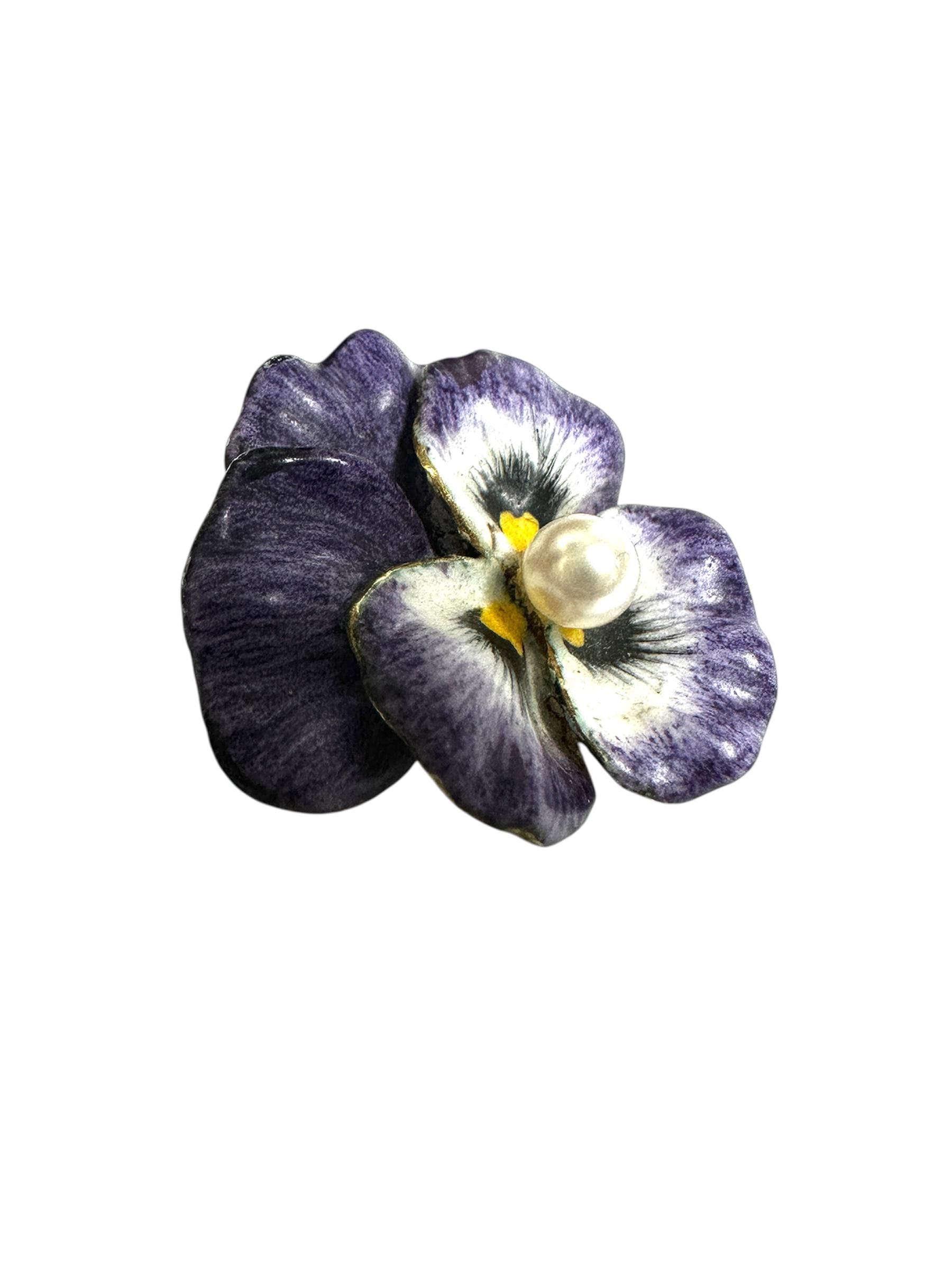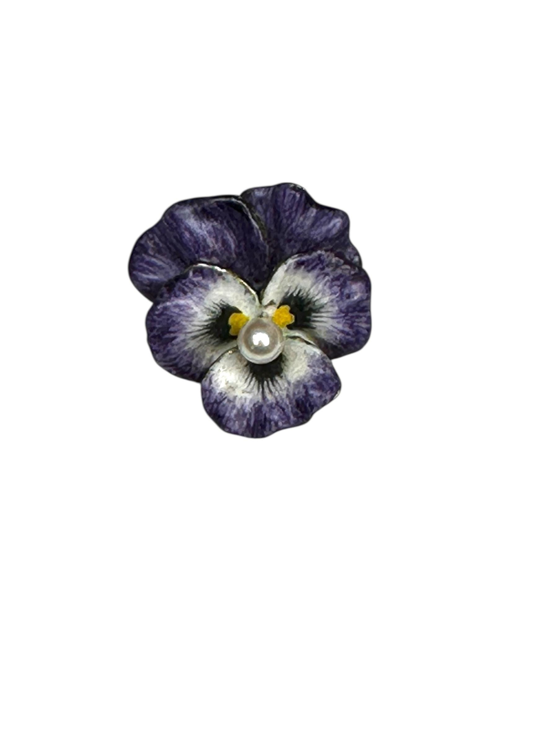 Victorian 14 karat yellow gold purple, black, white and yellow enamel pansy or flower brooch. The center of the brooch is highlighted by a pearl. Whenever you wear this pin you will bring spring with your wherever you go! Perfect for flower lovers! Authentic Antique Brooch. Not a reproduction.