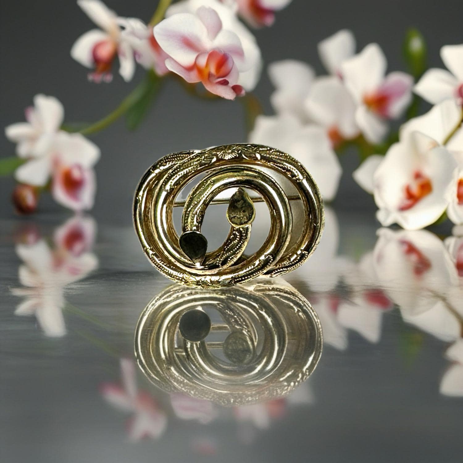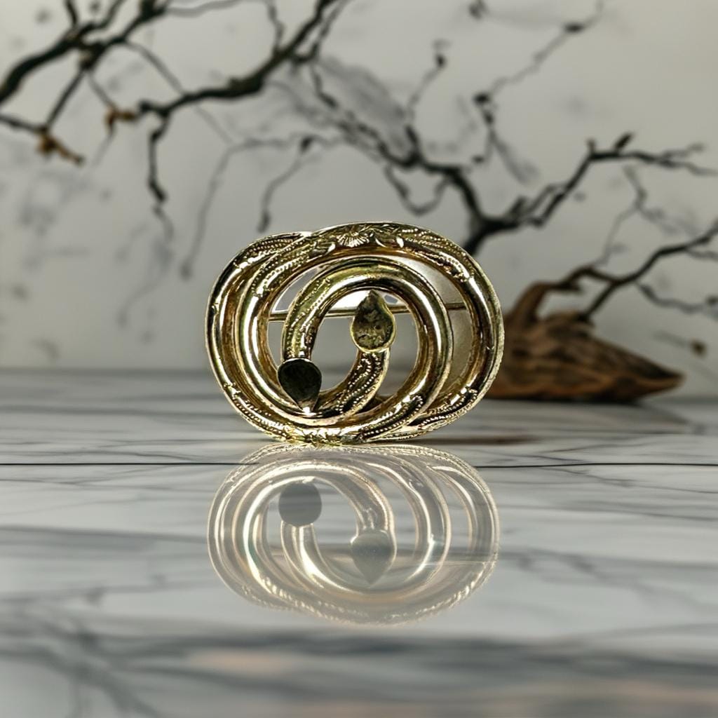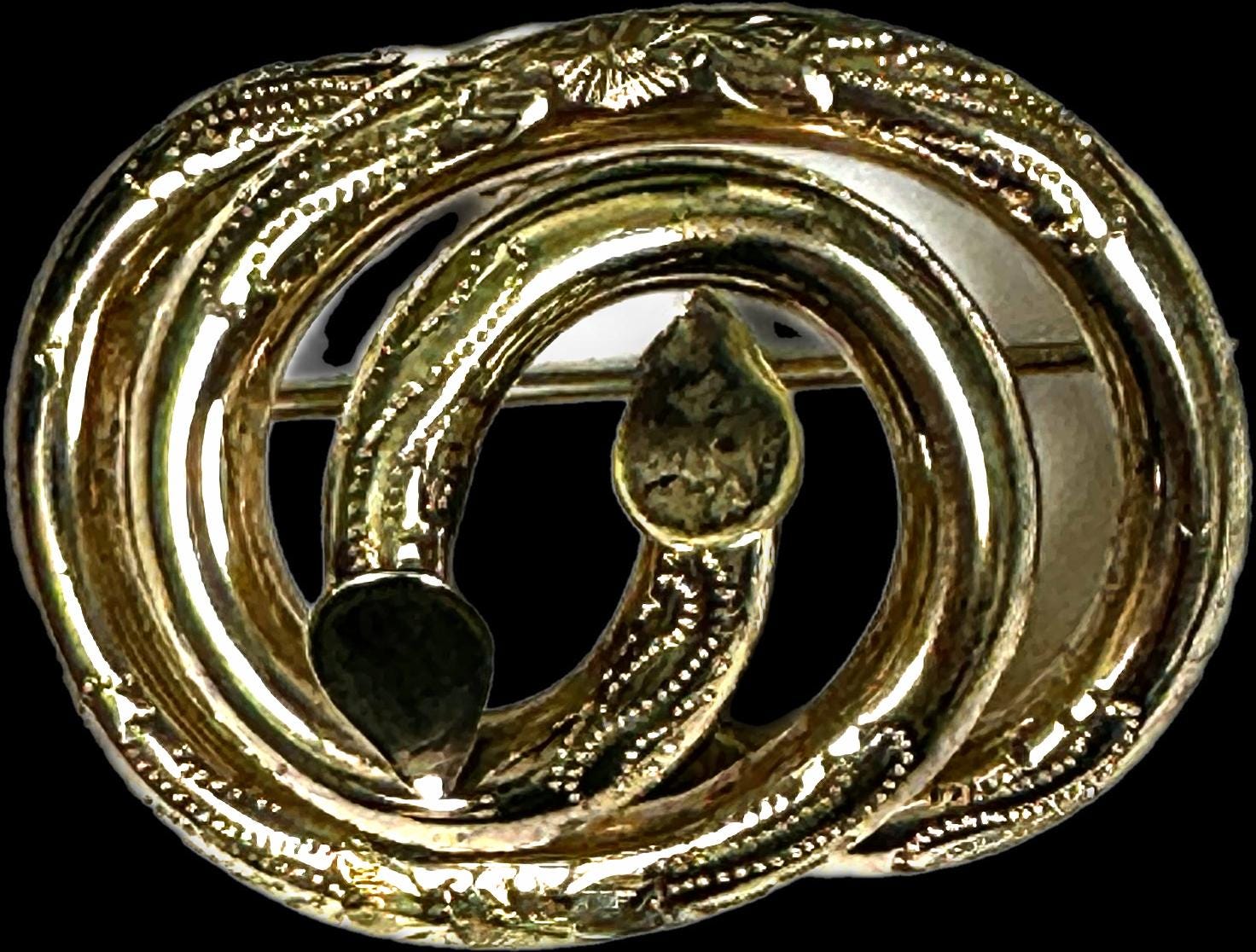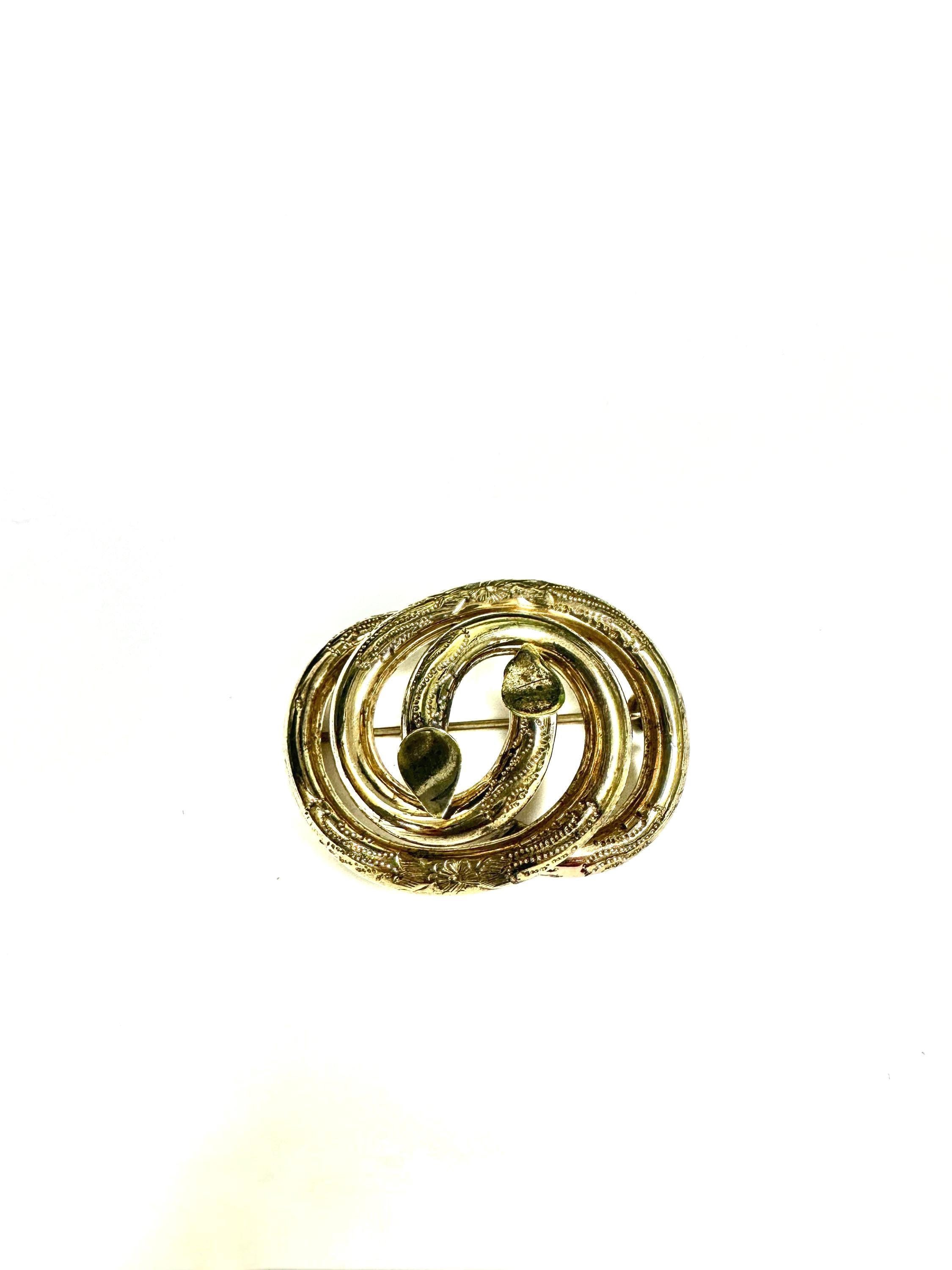 This large yellow gold filled knot type Victorian brooch is definitely a statement piece. Dress up the lapel of your jacket or a beautiful addition to a a scarf.