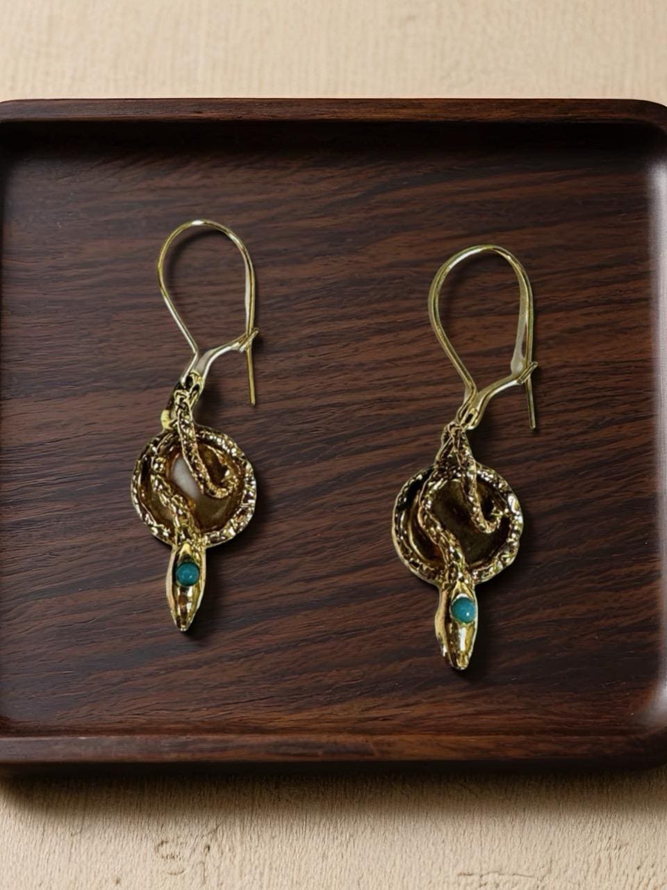 Gemstone: Each snake has a round cabochon cut turquoise measuring approximately 2.00mm each.