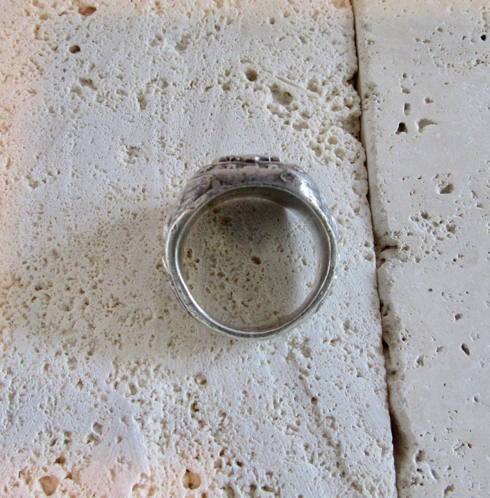 Sterling silver (stamped) United States Navy ring. The ring is in good condition with relatively no wear. The eagles on the sides of the ring are not worn down nor is the center USN plate. Ring Size: 8-3/4