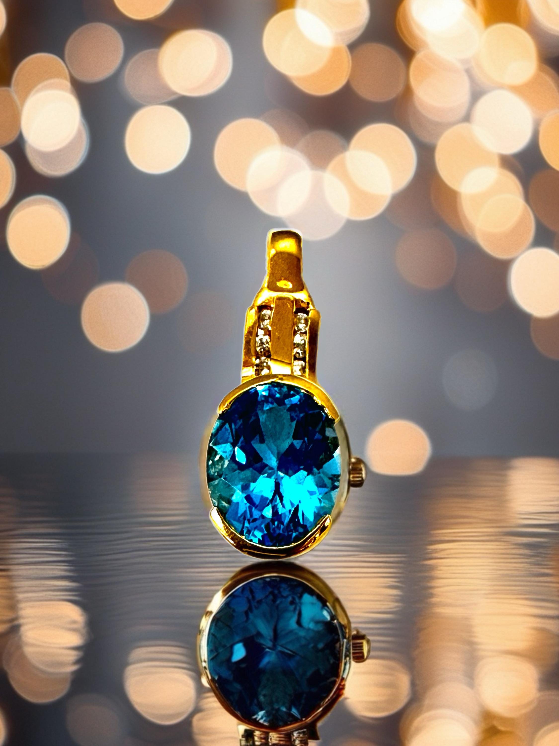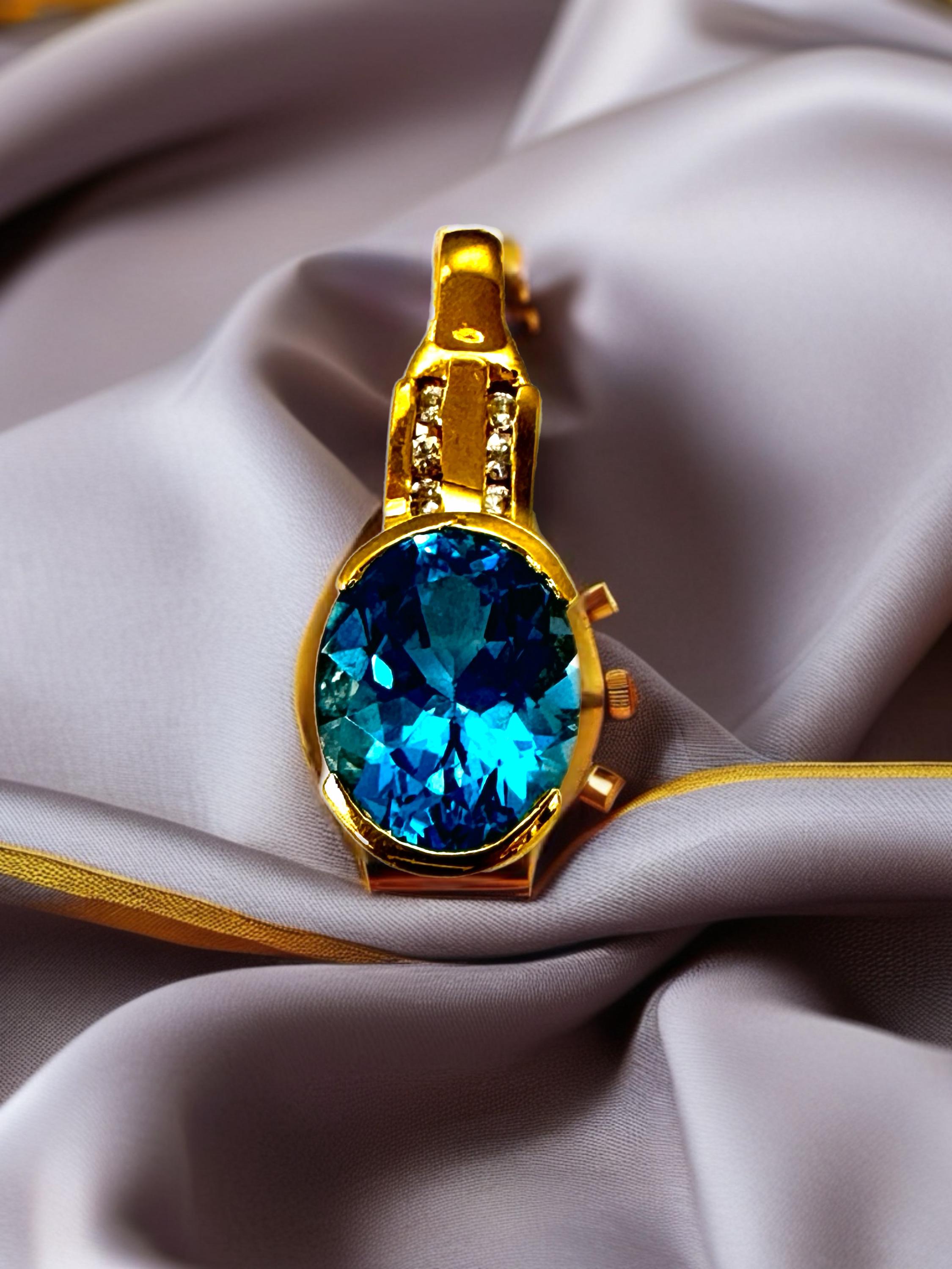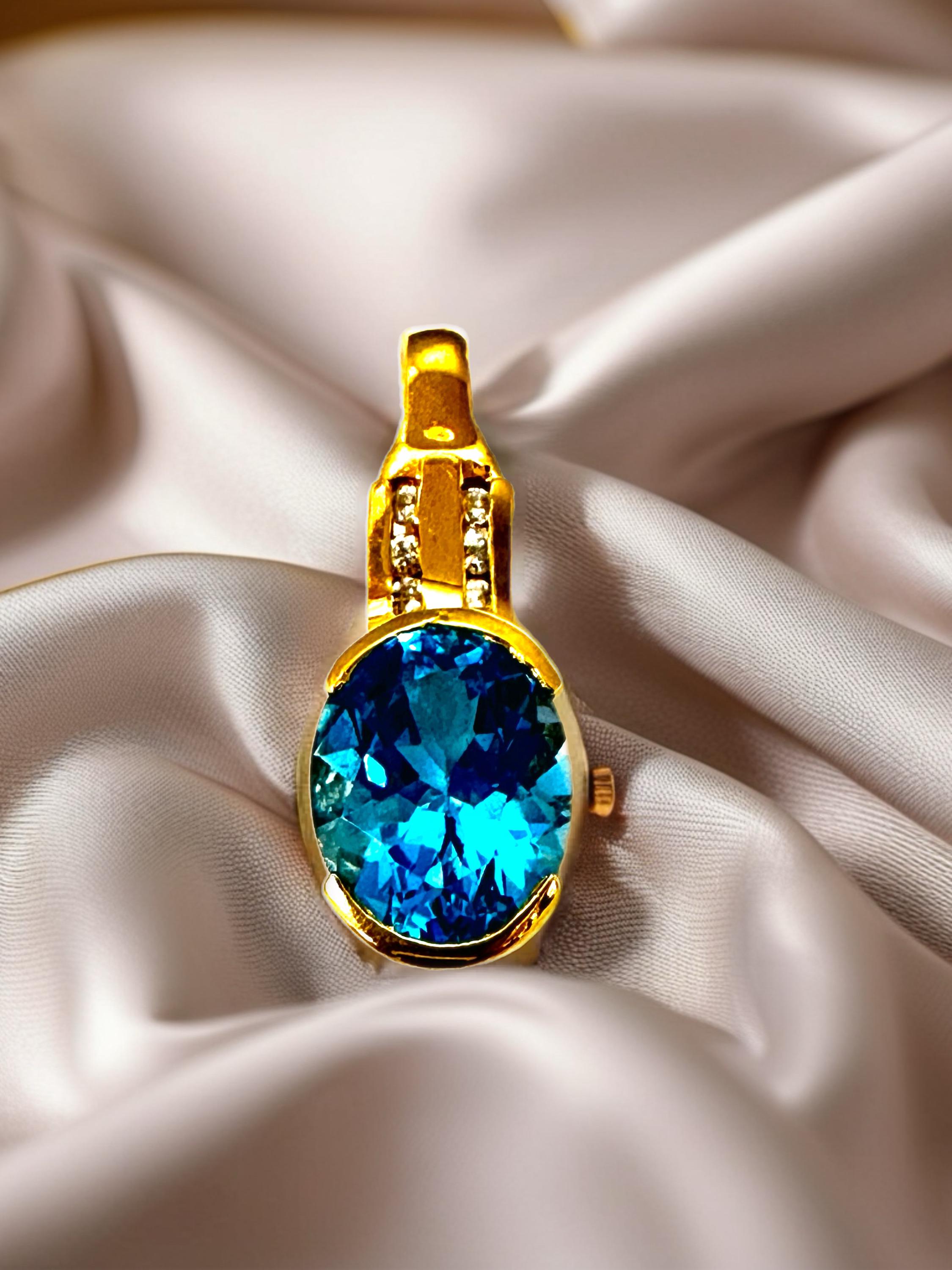 Introducing this vintage 14 karat yellow gold blue topaz pendant with channel set diamonds will capture every one's attention! Perfect to wear for formal attire and would look awesome with a white button down shirt and blue jeans!